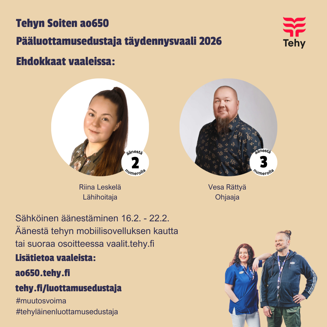 Alkuvuodesta käymme läpi luottamusedustaja täydennysvaalit. Lisätietoa vaaleista ja aikataulusta tulossa viikon sisällä. Ole kuulolla! #muutosvoima #tehyläinenluottamusedustaja