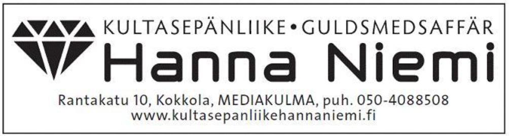 Kultasepänliike Hanna Niemi -10% normaali hintaisista tuotteista. Tarjous ei koske töitä eikä tarjousta voi yhdistää muiden tarjousten kanssa.