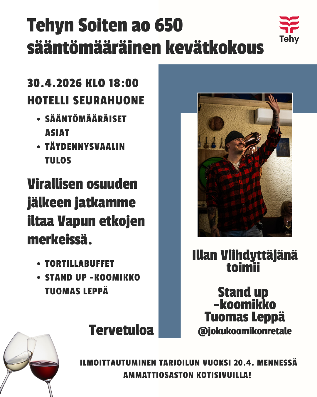 Vapun etkoja tulee viihdyttämään Stand up -koomikko Tuomas Leppä!